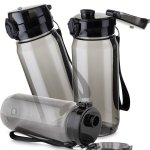 Garrafa plástica 600 ml com filtro, alça de silicone e tampa de metal